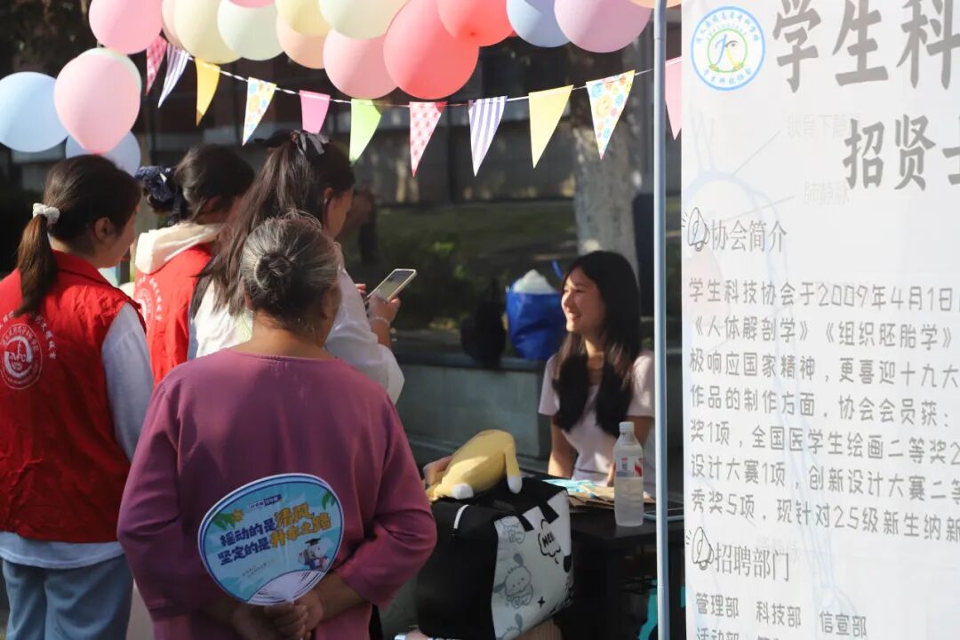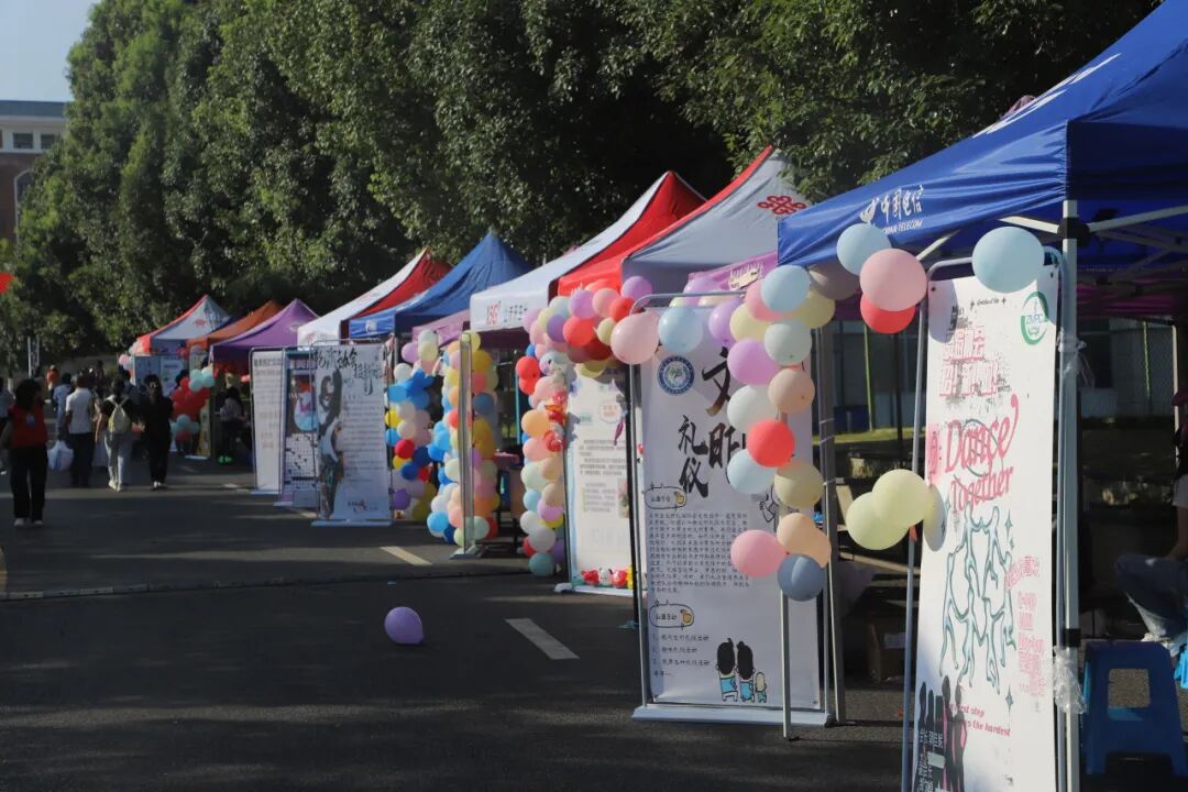 与此同时,社团展示活动如火如荼地展开。学术类、艺术类、体育类等众多社团纷纷展示自身的活动成果与特色,吸引了大量新生驻足。社团成员热情介绍社团的活动内容,并提供了多种互动体验机会,如现场音乐表演、绘画展示、即兴戏剧、球类体验等,让新生在轻松愉悦的氛围中,充分感受大学生活的多彩面貌。