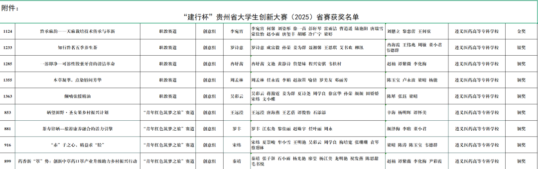 喜报!我校多支队伍获“建行杯”贵州省大学生创新大赛职教赛道、“青春筑梦之旅”赛道金银铜奖