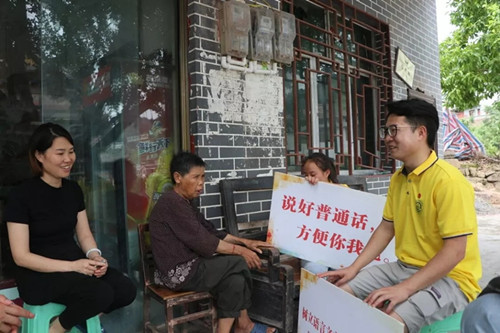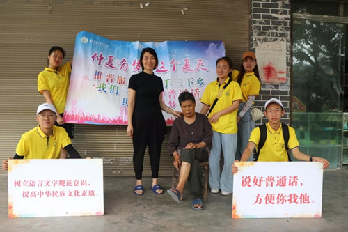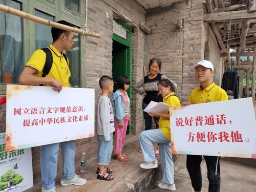 随后推普服务队员和好几位村民进行了交谈,发现他们的普通话基本都不太标准,身边的人都是用方言来交流,所以普通话的使用场合很少。村民对普通话仅仅停留在了解层面,并没有进行过普通话的系统学习,这个结果让队员们深深体会到自己肩上的责任,也坚定了队员们推普的决心。