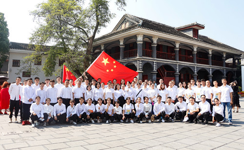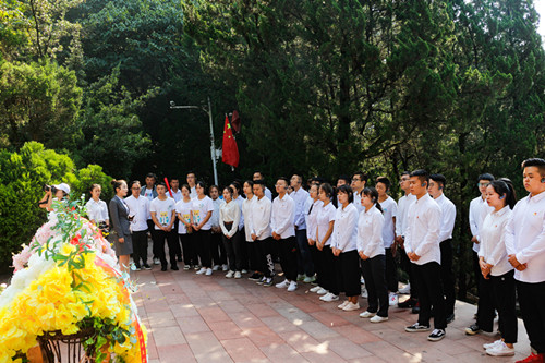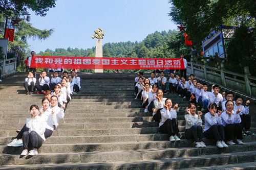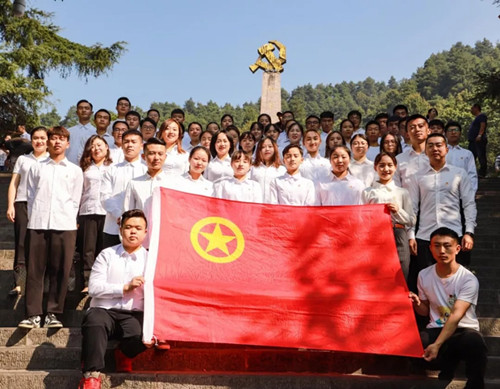第二党支部所有党员、团委所有老师以及六个系部的团员青年统一着装,佩戴党徽、团徽来到红军山和遵义会址开展主题党(团)日活动。