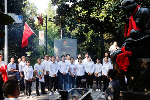 在红军山,第二党支部的党员和团委老师以及团员青年认真地听了关于红军烈士的讲解。讲到烈士龙思泉时,他尊重生命,救死扶伤的事迹令在场的老师和同学们感动。同学们为红军烈士献上花篮,在烈士碑前,第二党支部的党员们再一次宣起入党誓词,在庄严肃穆的红军烈士面前,坚定而郑重;团员青年们重新宣起入团誓词,“我志愿加入中国共产主义青年团,坚决拥护中国共产党的领导,遵守团的章程……”面对团旗,团员青年们重温入团誓词,铿锵的入团誓词回荡在红军山的上空。