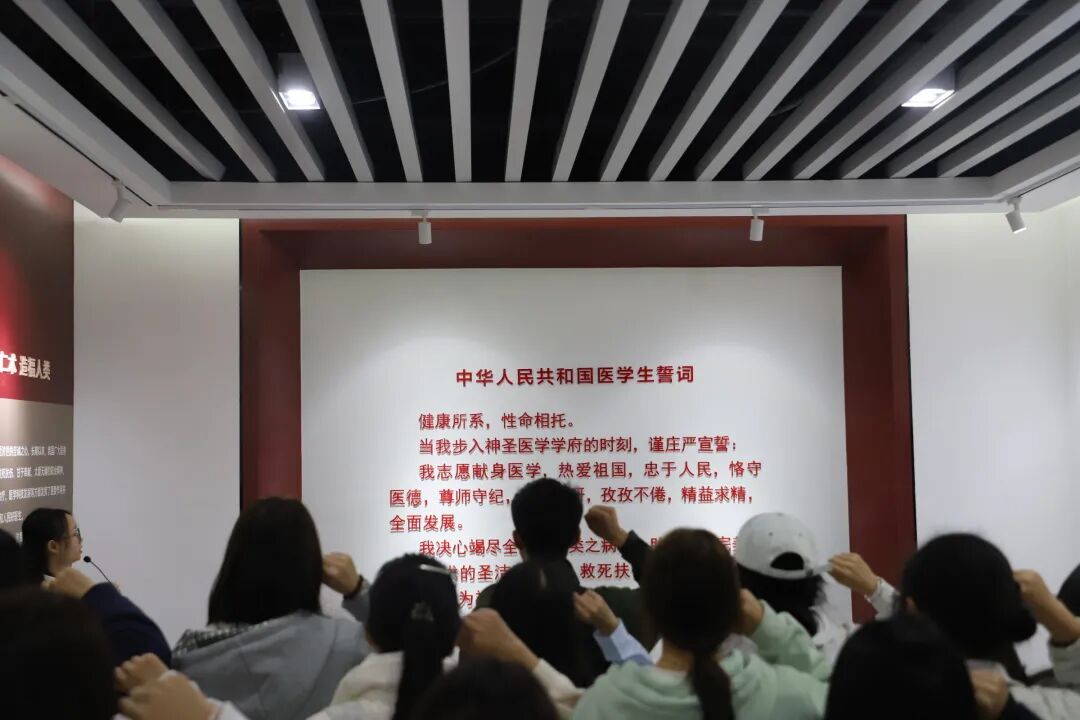 本次课程以“理论+体验+使命”为主线,通过“看、听、感、悟”相结合的多元教学方式,引导学员在沉浸式学习中筑牢信仰根基。学员们不仅系统参观了“红色贵州之光”文化长廊与“马克思主义发展史”主题展厅,深入了解红军长征在贵州的革命历程与马克思主义理论的发展脉络,还通过“挖野菜”情景互动、VR虚拟仿真“云参观”等特色环节,切身体验革命岁月的艰苦卓绝。活动在全体学员庄严的医学生誓言中达到高潮,进一步坚定了学员的理想信念与时代担当。