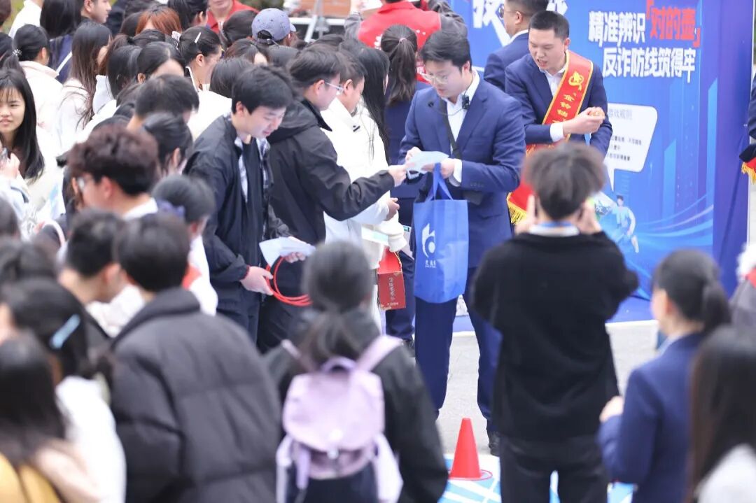 活动现场,银行工作人员也没闲着,一边讲金融反诈知识,一边解答各种疑问。志愿者穿梭在人群中,把反诈宣传册递到每个人手里:刷单诈骗、冒充客服、虚假贷款……各种套路一网打尽,防范技巧手把手教。
