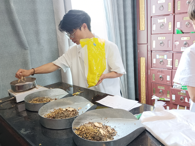 本次实践单位为家乡某中医诊所附属药房,该药房以传统中医药服务为主,配备实木中药柜,收纳数百种常用中药饮片,兼具中药调剂、药学咨询等功能,是当地群众获取中医药服务的重要场所。从最初称量药材时的手忙脚乱,到后期能快速准确地完成调剂操作,戥秤使用、药材辨识、处方调剂等技能得到了显著提升,也培养了自己的耐心和细心。也使我深刻认识到药师肩负的责任,每一味药的剂量、每一次用药指导都关系到病人的健康,这要求自己在工作中必须严谨、负责,容不得半点马虎。